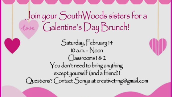 Join your SouthWoods sisters for a Galentine's Day Brunch! Saturday, February 14th - 10am to NoonClassrooms 1 & 2 You don't need to bring anything except...